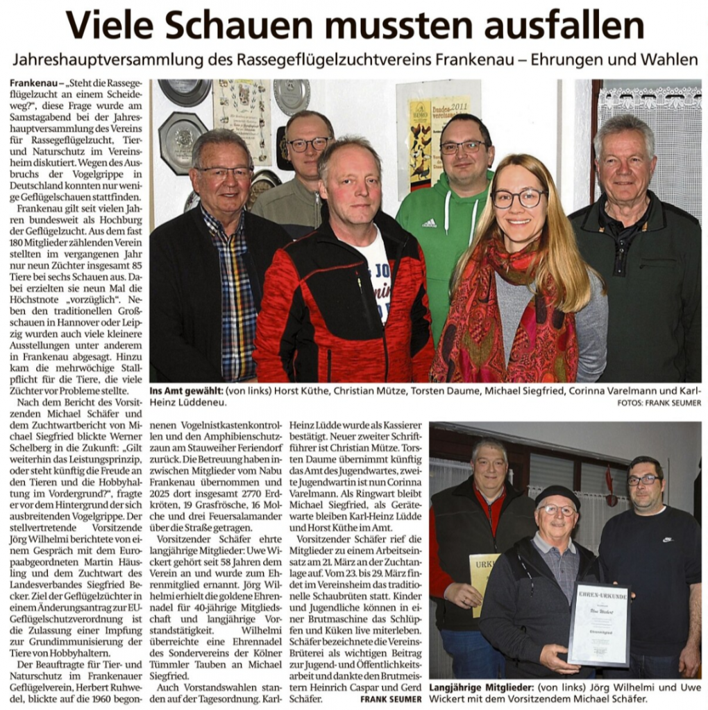 Hier der Bericht über unsere JHV zum nachlesen. Neben Ehrungen standen auch Neuwahlen des Vorstandes auf der Tagesordnung.