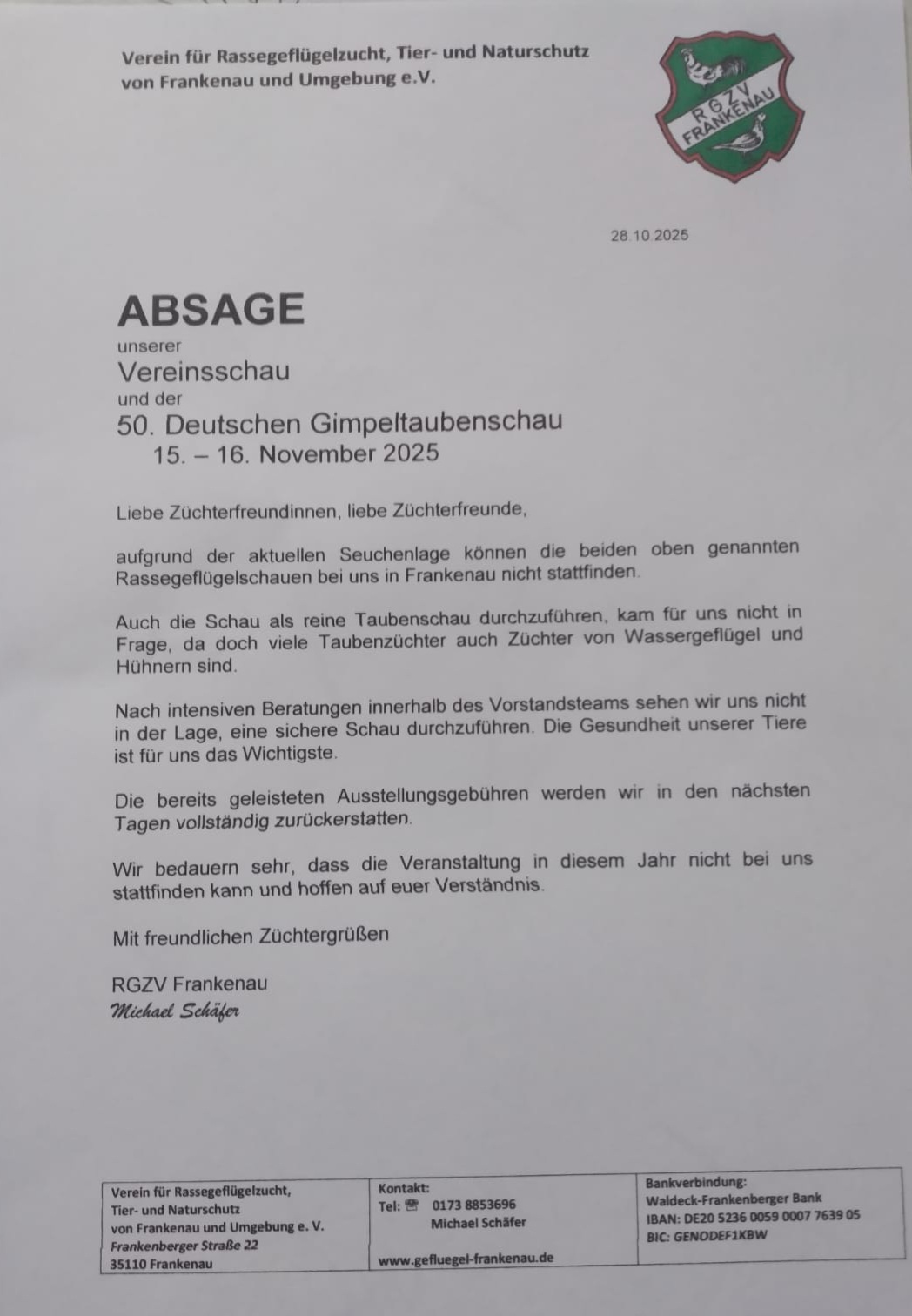 Vereinsschau – abgesagt